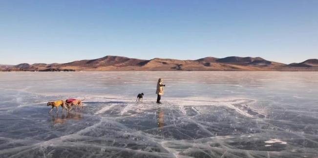 尽管冬日的寒风凛冽,冰面的寒冷刺骨,但齐文清老师的眼神始终专注而坚定,未曾有过一丝懈怠。随着时间的推移,一幅巨型的大地艺术创作在冰面上逐渐清晰地呈现出来。那作品中,蜿蜒的线条似冬日里的风之轨迹,奇妙的形状宛如冰雪世界里独特的文化符号,生动地诉说着大自然与艺术融合的美妙故事,也展现出京蒙两地文化在这片土地上碰撞出的别样火花。