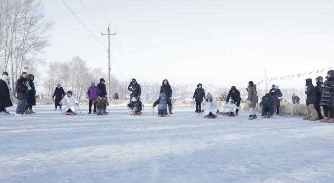 孩子们迫不及待地踏上冰面,有的坐在冰车上,手持冰钎,用力一撑,便如离弦之箭在冰面上飞驰,感受风在耳边呼啸的刺激;有的坐上轮胎,在挖掘机的旋转带动下,开启了一场绝妙的冰上狂欢体验,彼时,欢笑声、呐喊声在冰面上此起彼伏。