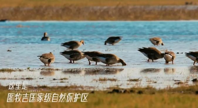 孩子们踏入图牧吉国际自然保护区,仿佛进入了一个冰雪覆盖的鸟类王国。在这里,洁白的雪与湛蓝的天空相映成趣,为各种候鸟搭建了一个天然的舞台。专业的保护区讲解员如同知识的使者,引领着孩子们穿梭在这片神奇的土地上。