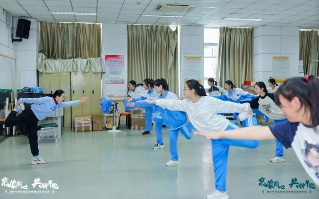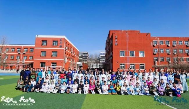 晨光初绽的校园里,两地学子用《绣美科尔沁》的舞蹈韵律与京剧水袖的婉转飘逸共舞。