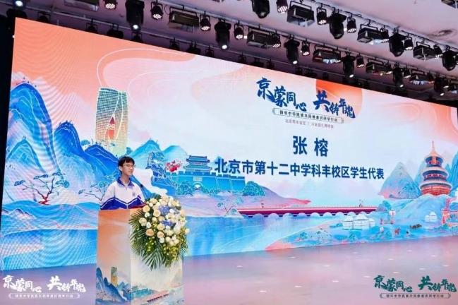 丰台十二中张榕同学在分享中说道:"从蒙古马精神到北京蓝天保卫战,我们都在用青春诠释对祖国的热爱。
