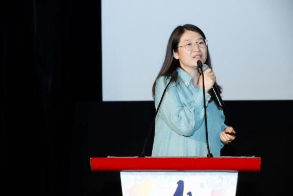 北京师范大学艺术与传媒学院副院长甄巍教授分享了自己是如何在项目的过程中慢慢觉得儿童美术教育的伟大,以及美育或者教育的美感其实就在于孩子们能够带着爱心,更好地关注到我们每一次艺术的行动中。