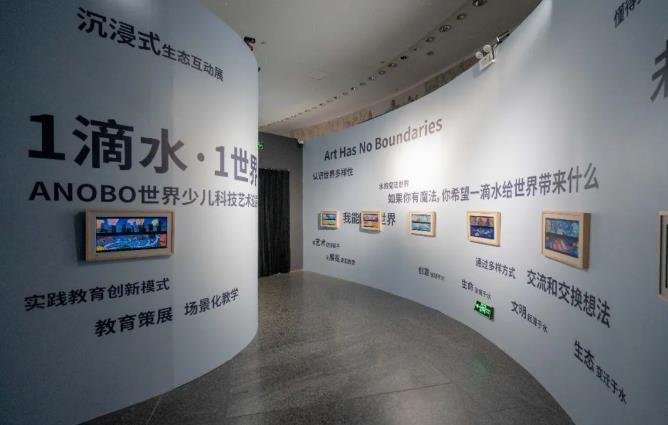 “1滴水·1世界”ANOBO世界少儿科技艺术巡展北京站于2022年6月28日在中华世纪坛艺术馆正式开启。各界专家作为嘉宾莅临启动仪式现场致辞,在“ANOBO少儿全球素养论坛”中与教育者共同探讨创新素质教育,并为小艺术家颁发参展证书。展览创新打造沉浸式场景化教学模式,秉承“艺术性、教育性、科技性、国际性”四大策展原则,培养具有全球视野和公益之心的小小世界探险家。