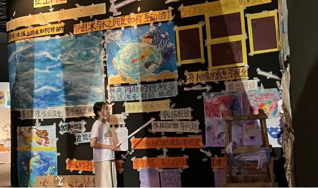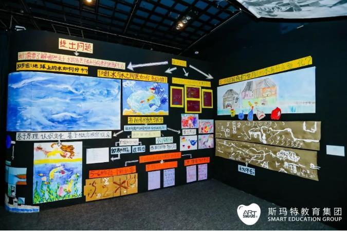 在北京斯玛特教育科技集团有限公司展区中,我们看到孩子们提出的问题是,我们需要了解哪些关于水的信息,这样才能有利于构建健康的生活。这次艺术策展,我们强调的是解决问题,在课堂的结尾,我们再次提出一个问题来作为呼应,让孩子把体验的价值发挥到最大,用提一个好问题把课堂延续。