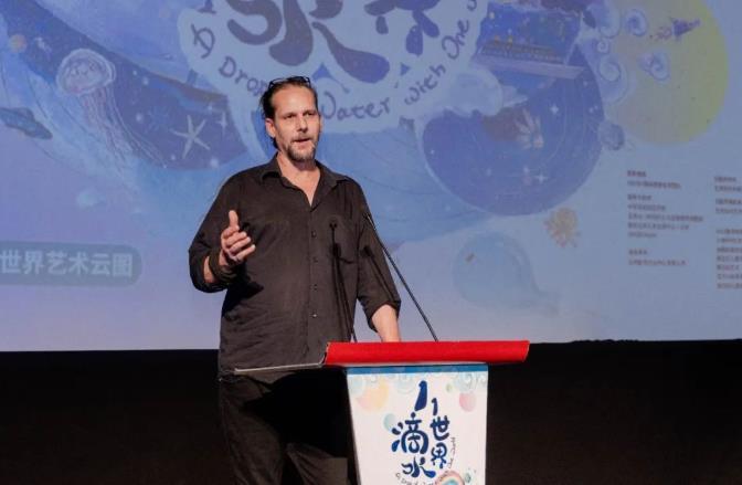 中华世纪坛艺术馆执行馆长冀鹏程在欢迎辞中表示,中华世纪坛艺术馆品牌项目“世界艺术云图”系列,以“数字化讲述人类伟大文明与艺术背后的故事”为宗旨,致力于向观众呈现突破时间、空间与地理限制的互动多媒体艺术展及多媒体教育活动。“云图”历经七年探索旅程,自今年起将聚焦少儿艺术科技策展实践方向。今年,我们有幸邀请到北师大-ANOBO少儿全球素养课题组共同呈现这样一场以“水”为线索进行的场景化教学创新实践展览,从多维度讨论人类与地球环境的共生关系,期待在这个暑期能够为家庭亲子观众带来一场美妙的艺术之旅。
