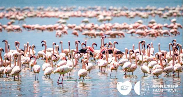 成群的火烈鸟于湖边悠然信步,交颈嬉戏,翩然起舞,把纳瓦沙湖水染成一片粉红色海洋,浪漫至极。