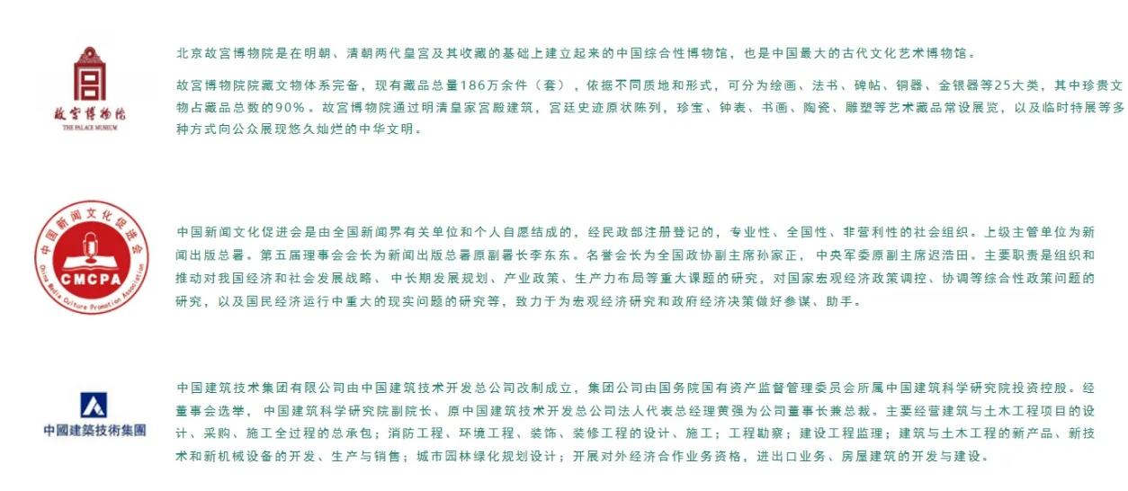 协办单位:北京大学、清华大学、复旦大学、山东大学、对外经济贸易大学、中国古迹遗址保护协会、中国博物馆协会、中国红色文化研究会、北京文物保护基金会