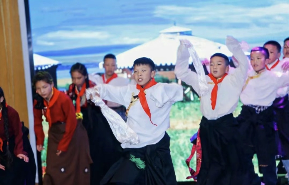 开营仪式在丰台区委党校北宫镇分校礼堂举行,暖场视频中,长江源的壮美航拍、可可西里的藏羚羊群、藏族儿女的热情歌舞,勾勒出治多县“雪域高原”“中华水塔”“动物王国”的独特魅力。治多县索加乡小学生们的开场舞蹈《欢乐串烧——民族团结一家亲》与歌曲《高原红》点燃现场氛围,丰台方庄二小的孩子们用童真表演传递首都少年的热情。